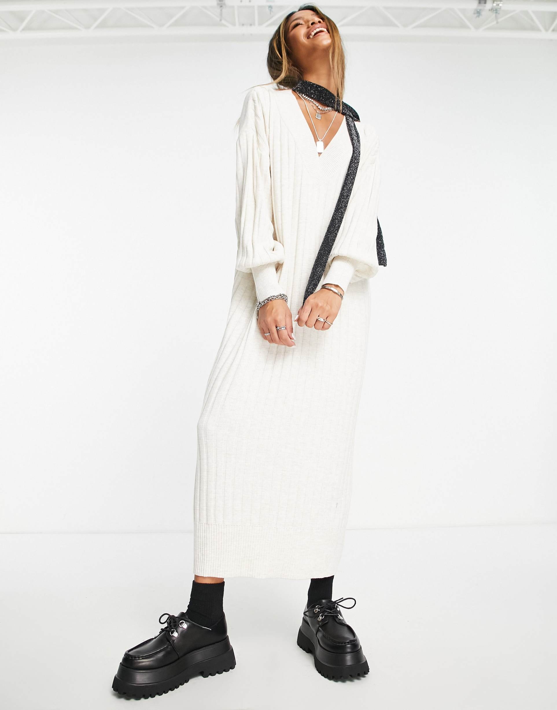 ONLY KNITTED V NECK MAXI DRESS IN CREAM