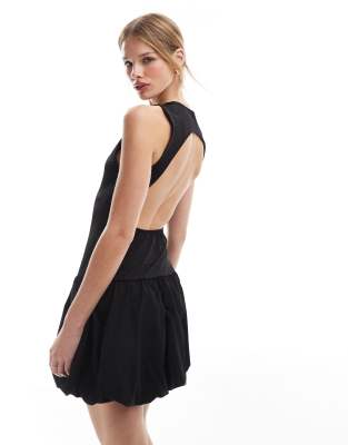 ONLY OPEN BACK BUBBLE HEM MINI DRESS IN BLACK
