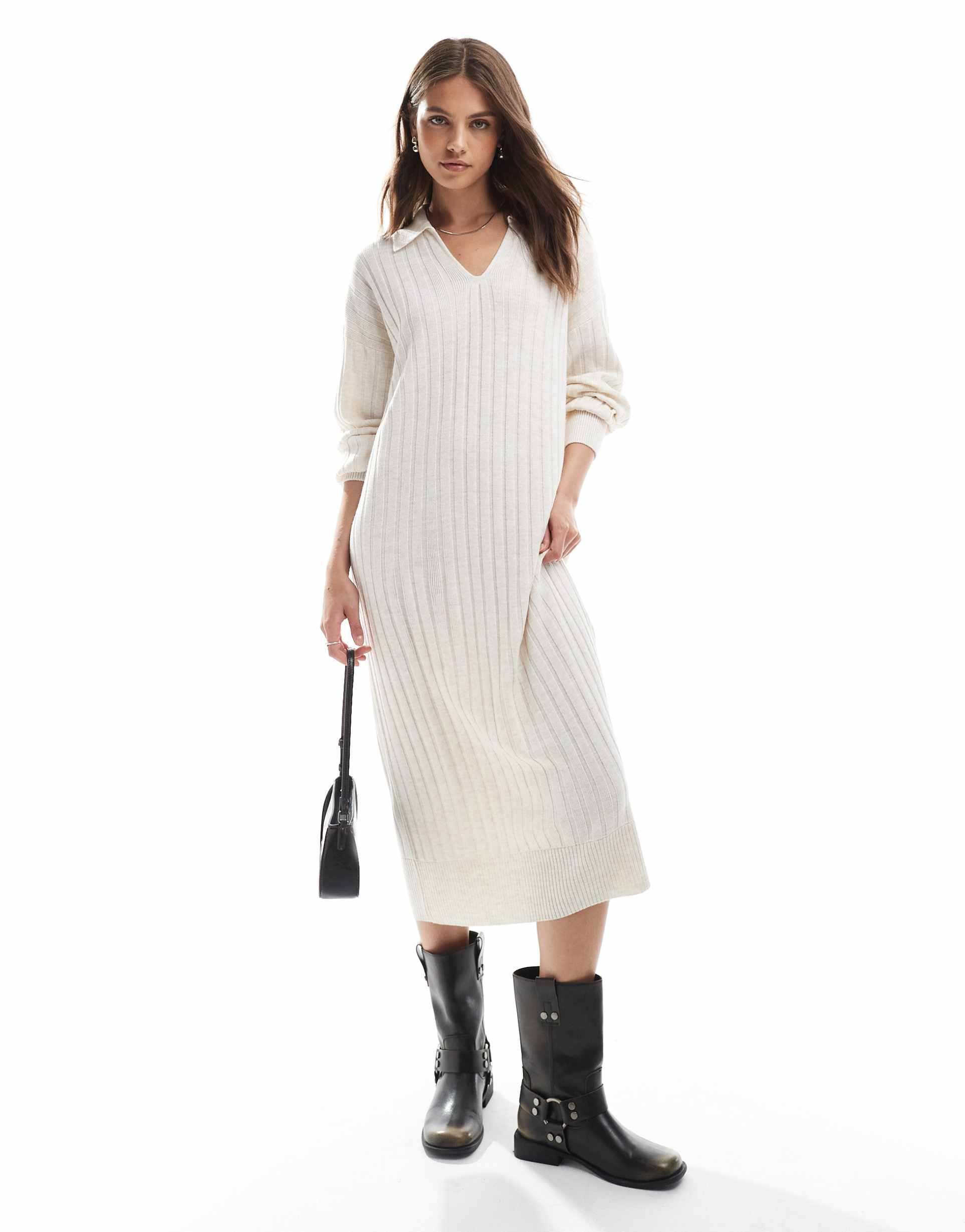 ONLY POLO NECK KNIT MIDI DRESS IN STONE