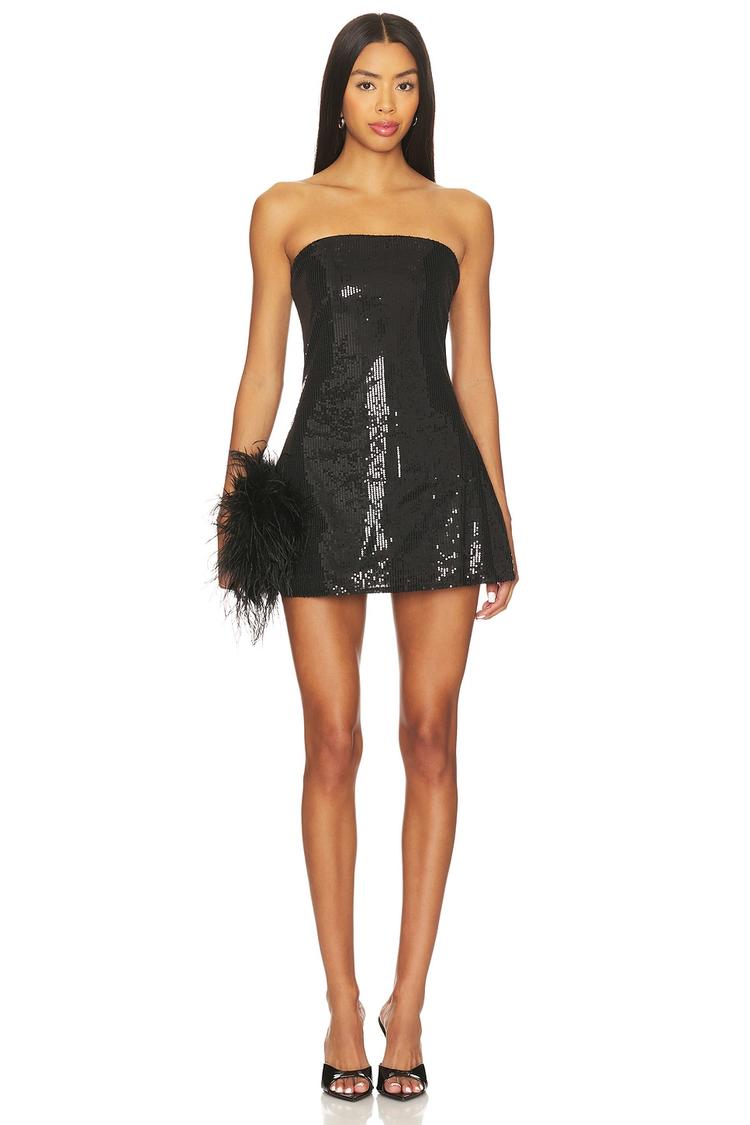 Shiny black polyester fabric and a fitted mini shift silhouette define this strapless dress with a straight neckline. Featuring a hidden side zipper and fully lined construction, it offers a sleek, modern look perfect for night outs, cocktail parties, and date nights. The clean hemline and minimal design highlight its trendy, sexy appeal, making it an essential piece for versatile, fashionable evening wear.