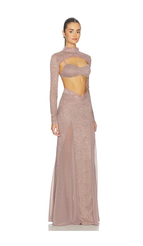 OW COLLECTION NAIA MAXI DRESS IN BROWN.