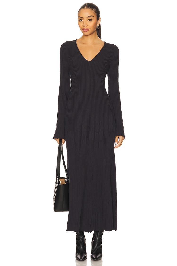 A sleek black sheath dress crafted from a soft blend of acrylic, polyester, and nylon offers a figure-flattering silhouette that gracefully extends to a maxi length. Featuring a classic V-neckline and long regular sleeves, this minimalist design is perfect for layering or wearing solo. Its slip-on style and unlined fabric make it comfortable for cooler seasons, ideal for casual outings, workwear, or sophisticated date nights. The clean hemline and fitted shape create an elegant, timeless look with versatile appeal.