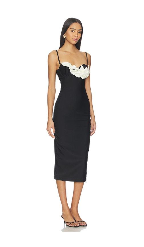 PATBO SELENE MESH FLOWER APPLIQUE MIDI DRESS IN BLACK.
