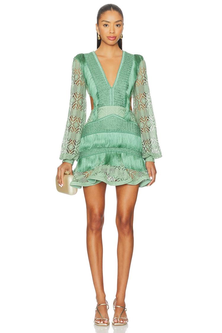 SAMBA FRINGE LONG SLEEVE MINI DRESS