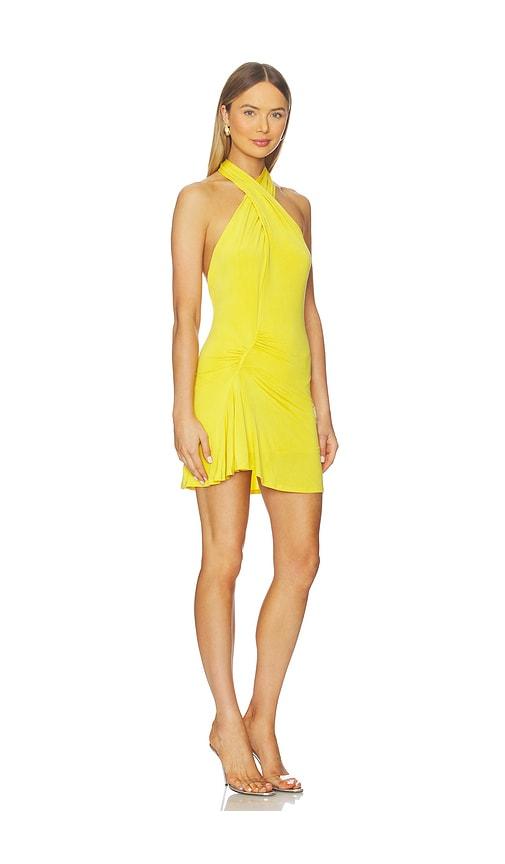 PEACHY DEN KYLIE HALTER KNOT DRESS IN YELLOW.