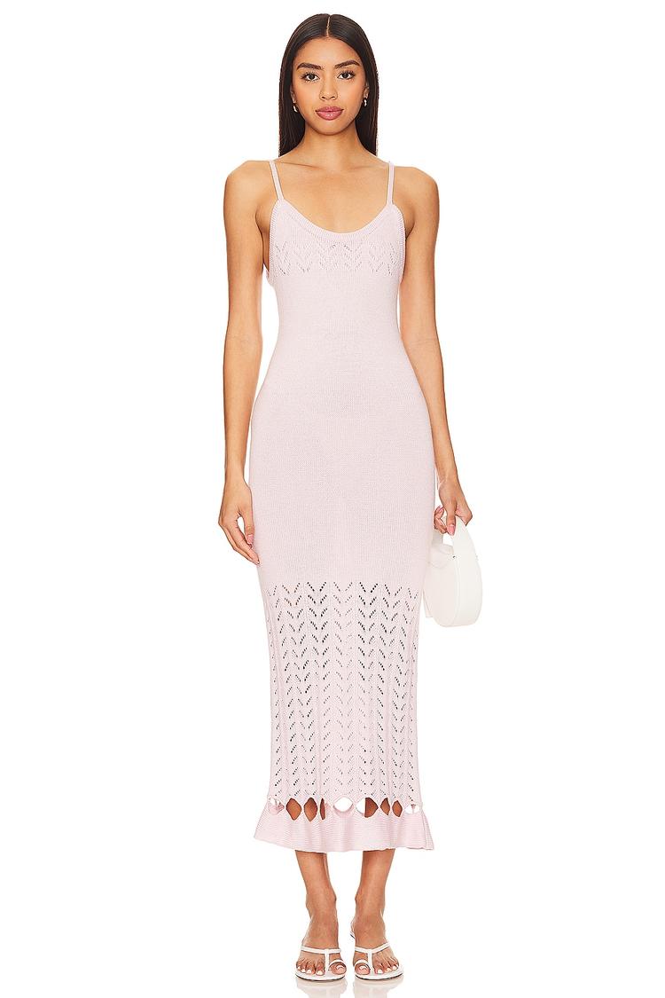 Soft knit fabric and a slim slip dress silhouette combine to create an effortlessly chic look. The midi length features a delicate crochet hem that adds subtle texture and feminine charm. Adjustable spaghetti straps and a U-neckline enhance comfort and style, making it perfect for casual brunches, relaxed date nights, or warm spring and summer days. The matte pink hue offers a minimalist yet elegant vibe, while the lightweight knit fabric ensures breathable wear throughout the season.