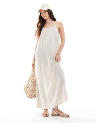 PIECES LINEN TOUCH CAMI MAXI DRESS IN BIRCH CREAM