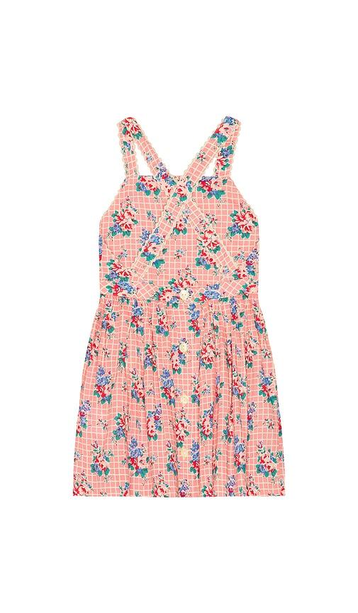POLO RALPH LAUREN SLEEVELESS COTTON FLORAL PINAFORE DRESS IN PINK.