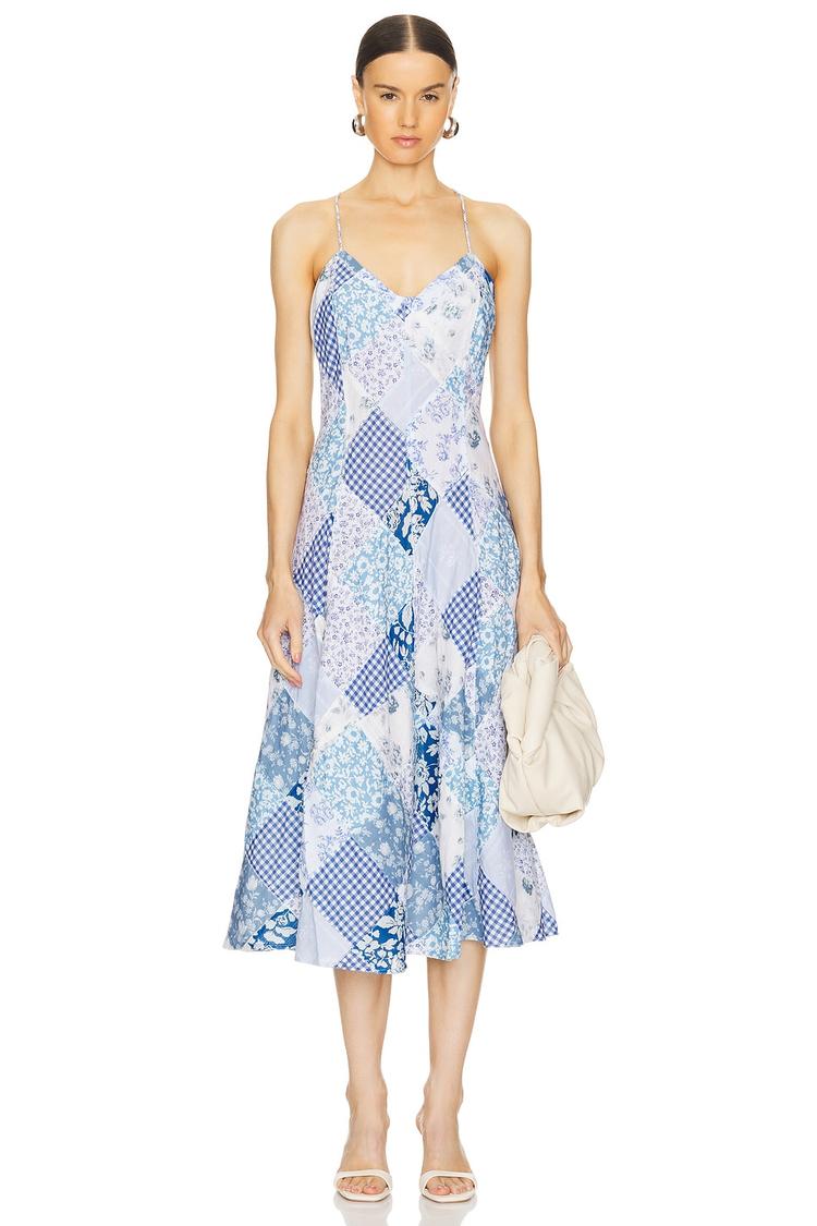 Soft cotton-linen blend fabric with a breezy A-line silhouette and a flattering sweetheart neckline creates an effortless look for warm weather. The midi length and open back with a concealed zipper add an elegant touch, while the patchwork pattern in shades of blue and white gives a fresh, casual chic vibe. Ideal for spring and summer days, this flared dress suits occasions like brunch, date nights, and vacation getaways with ease.