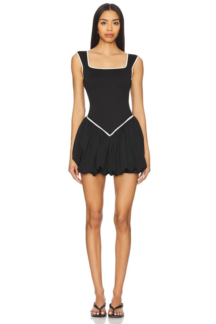 A sleek mini dress crafted from midweight nylon-elastane jersey offers a fitted bodice with a modern square neckline and wide straps. Its standout bubble hem adds a playful, voluminous finish, while side pockets introduce practical style. The dress’s minimalist silhouette and matte black hue with white piping detail make it perfect for casual outings, date nights, or evening events. Designed for Spring through Autumn wear, this slip-on piece combines contemporary chic with comfortable fit, delivering versatility and effortless elegance.