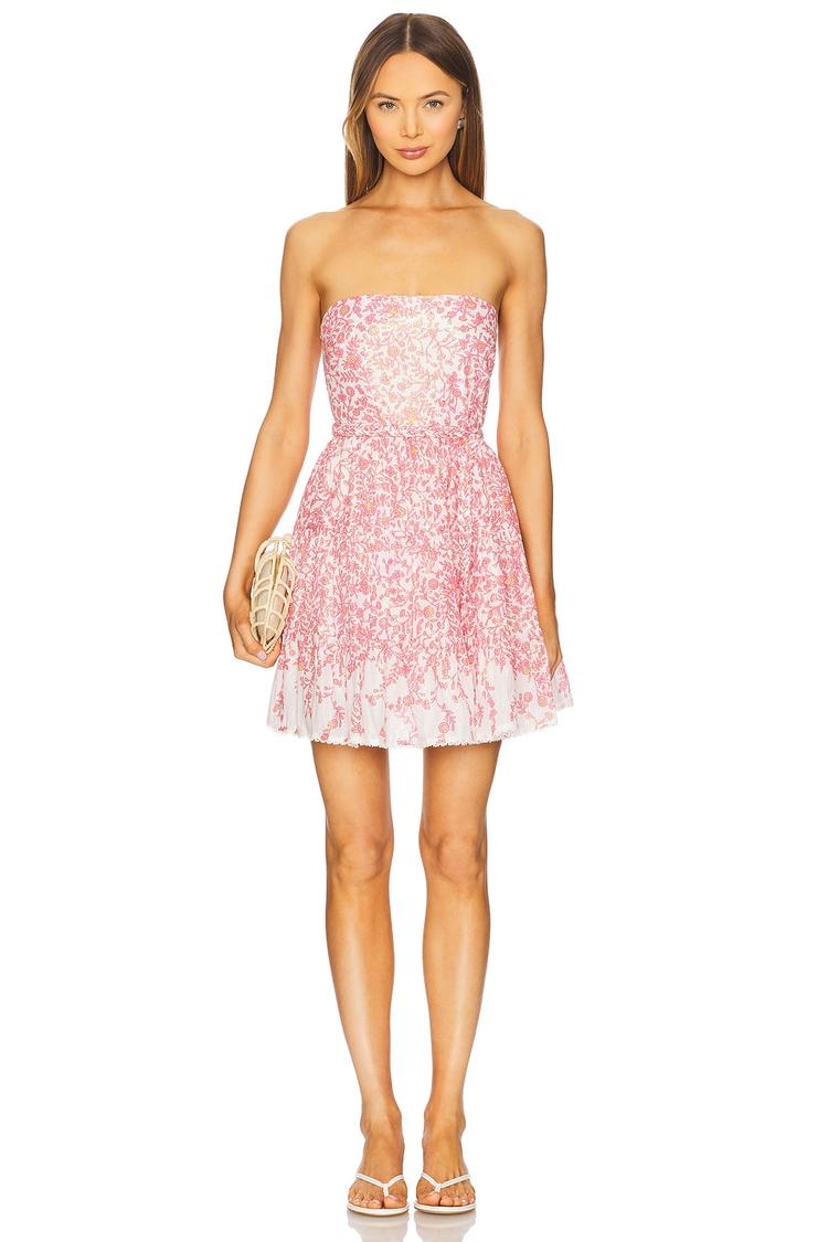 strapless floral mini dress