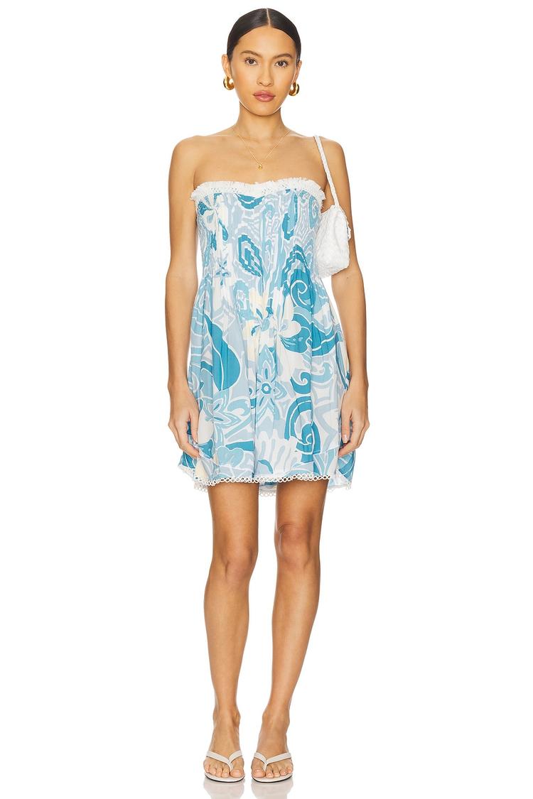 Lightweight and breezy, this mini shift dress features a straight neckline with a delicate fringed trim that adds a charming bohemian touch. Crafted from a blend of viscose and linen, it offers a loose, comfortable fit ideal for warm spring and summer days. The all-over blue floral pattern on a crisp white base evokes vacation and beach vibes, making it perfect for casual brunches, everyday wear, or relaxed getaways. The sleeveless, strapless design highlights sun-kissed shoulders for effortless style and versatility.