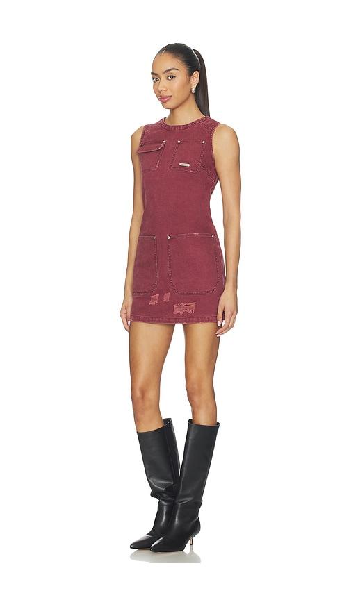PRIVATE POLICY DISTRESSED CANVAS DRESS IN BURGUNDY.