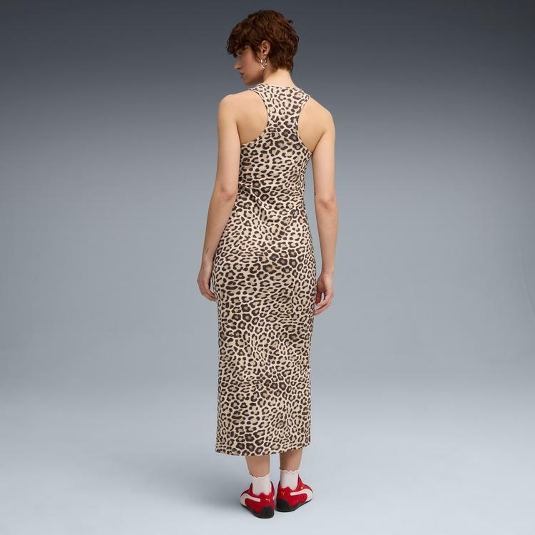 PUMA LEOPARD LUXE WOMEN'S ANIMAL PRINT SLIM DRESS IN WHITE, SIZE M