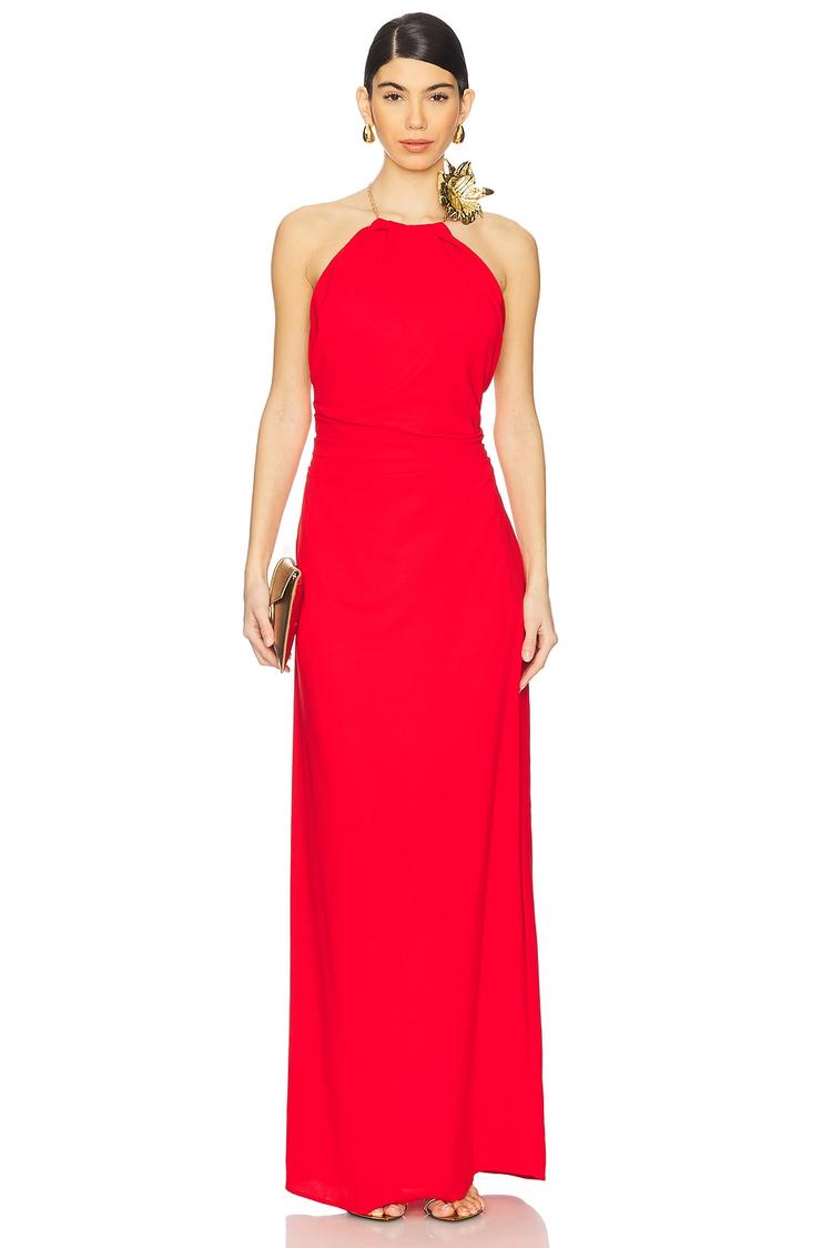 red halter neck gown