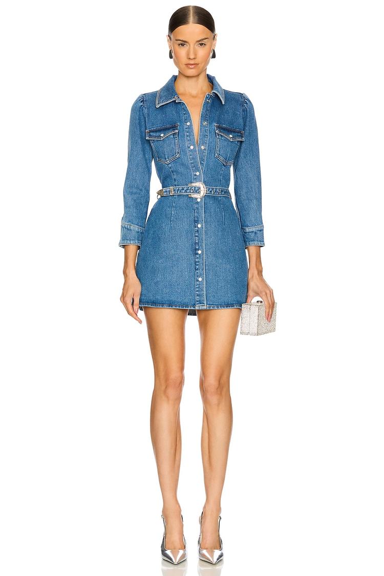 Matte blue cotton with a hint of elastane shapes this fitted mini shirt dress featuring a classic collar and long cuffed sleeves. Front button closure and breast flap pockets add functional style, while the attached waist belt with a buckle detail defines the silhouette. The clean hemline complements the casual chic vibe, making it an ideal choice for casual outings, brunch with friends, or business casual settings. Its versatile and timeless design transitions seamlessly through spring, summer, and autumn wardrobes.