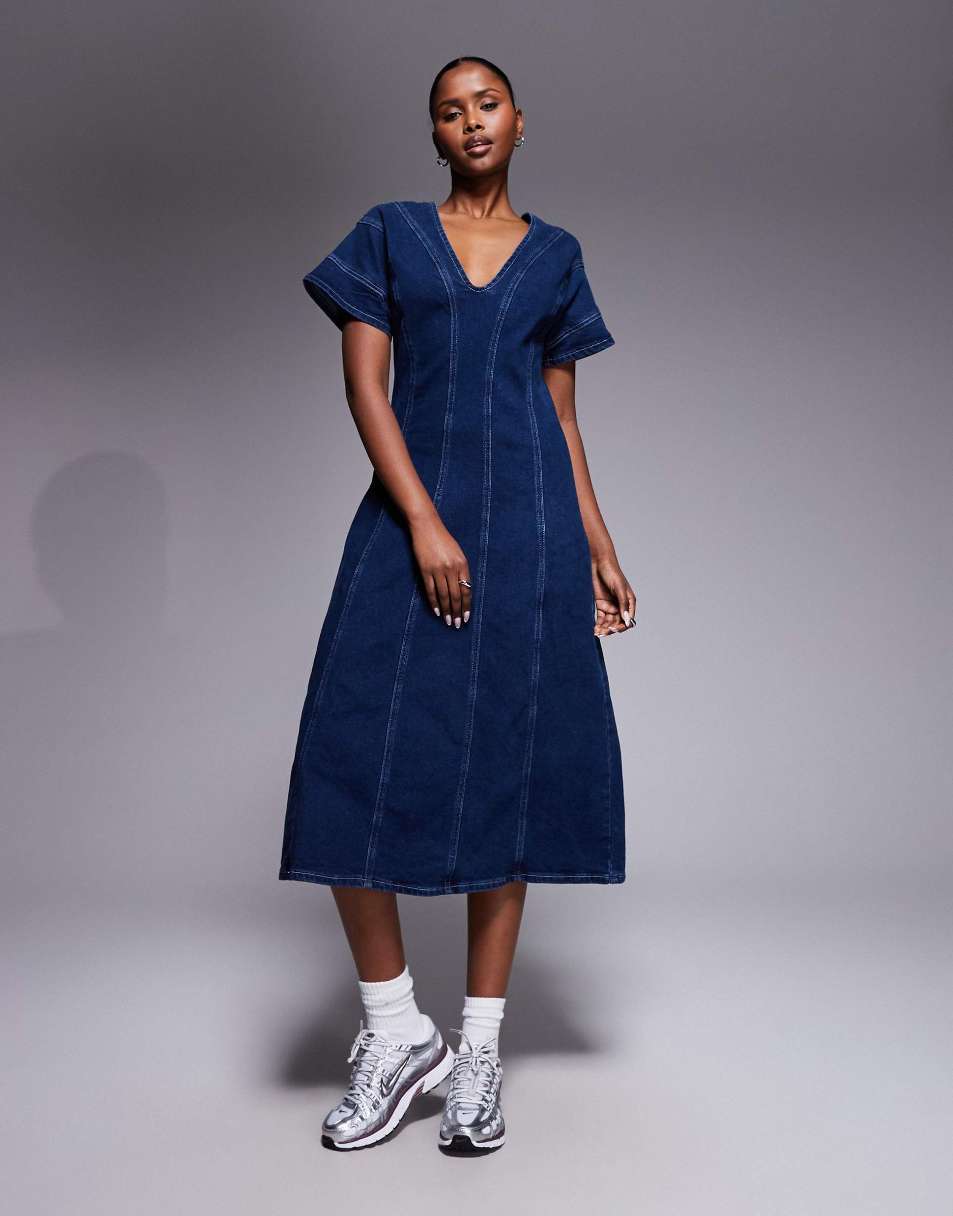 RIVER ISLAND SEAM DETAILING DRESS IN DARK DENIM