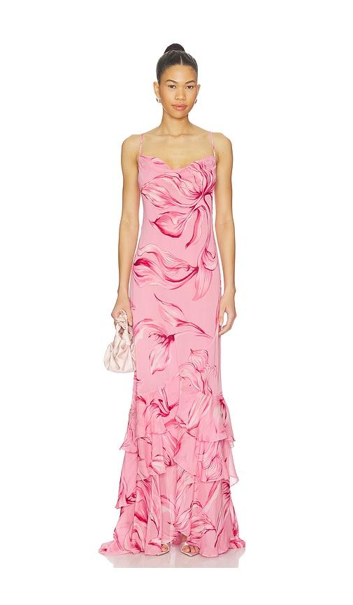 ROCOCO SAND COWL MAXI DRESS WITH SASH IN BLUSH.