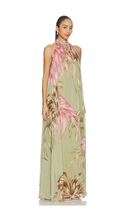ROCOCO SAND FLARED MAXI DRESS IN GREEN.