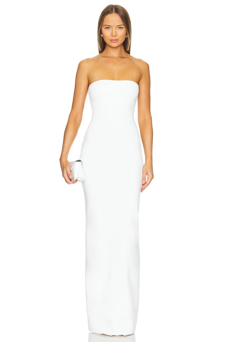 white strapless maxi dress
