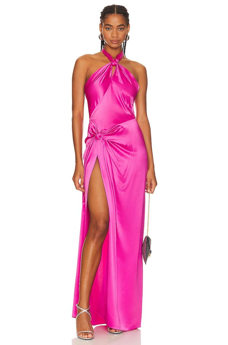 fuchsia satin maxi dress