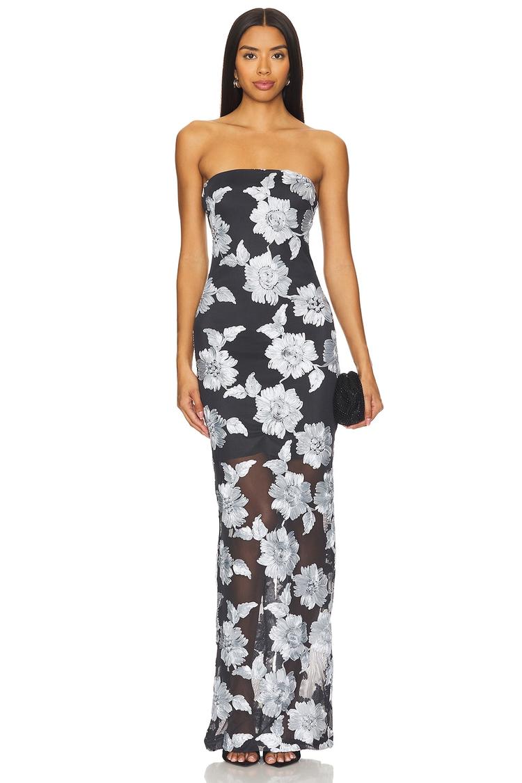 A sleek black mesh fabric adorned with white floral appliques defines this elegant sheath dress. The fitted silhouette and straight bustier neckline enhance a sexy, modern look, while the maxi length creates a graceful flow. Concealed zipper and hook-and-eye closure ensure a smooth back, complemented by the strapless design and silicone grip for comfort. Perfect for spring and summer cocktail parties, night outs, or romantic date nights, this dress blends contemporary style with feminine charm effortlessly.