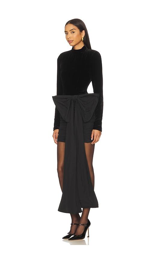 ROTATE VELVET BOW MINI DRESS IN BLACK.
