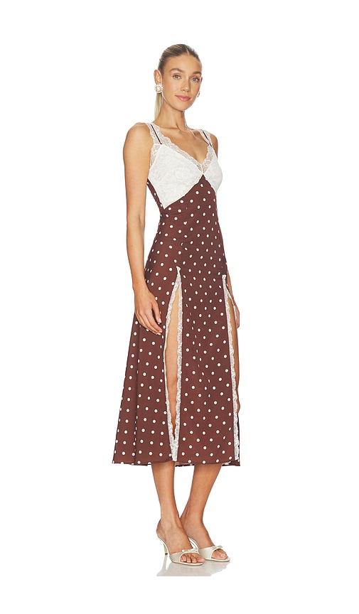ROWEN ROSE POLKA DOTS LONG DRESS IN BROWN.