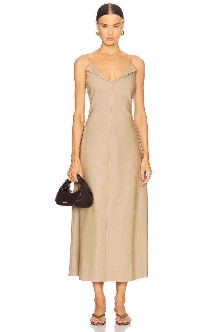 beige slip midi dress