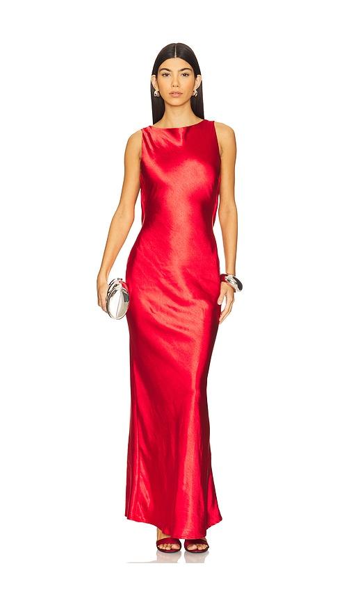 RUNAWAY THE LABEL ADAIR MAXI DRESS IN RED.