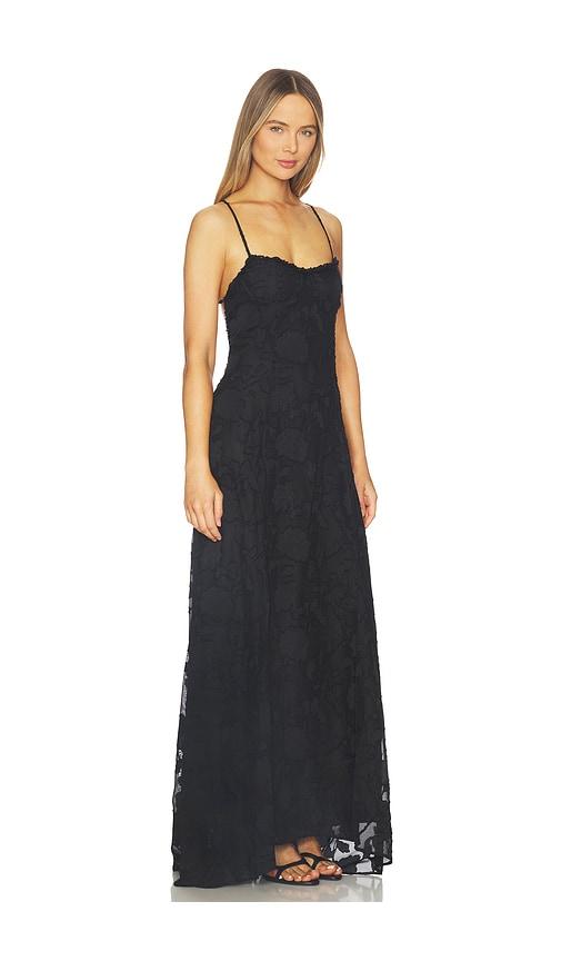 RUNAWAY THE LABEL ELLERBY FRILL TRIM MAXI DRESS IN BLACK.
