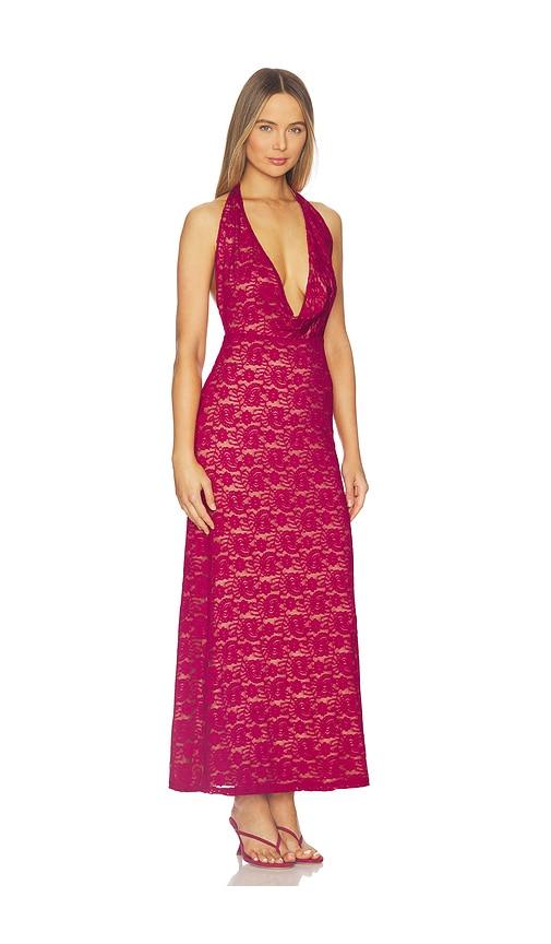 RUNAWAY THE LABEL KYLO PLUNGE COWL MAXI DRESS IN FUCHSIA.