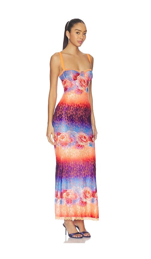 RUNAWAY THE LABEL SERINA LACE MAXI DRESS IN ORANGE,BLUE.