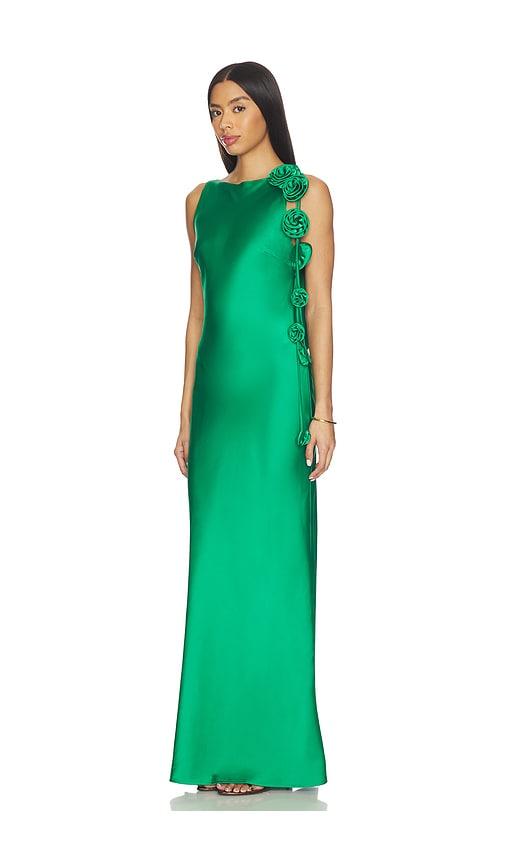 RUNAWAY THE LABEL ZURINA LOW BACK MAXI DRESS IN GREEN.