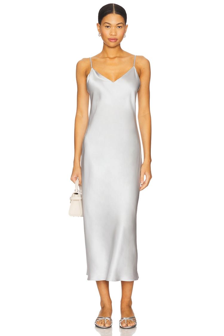 silver satin slip dress
