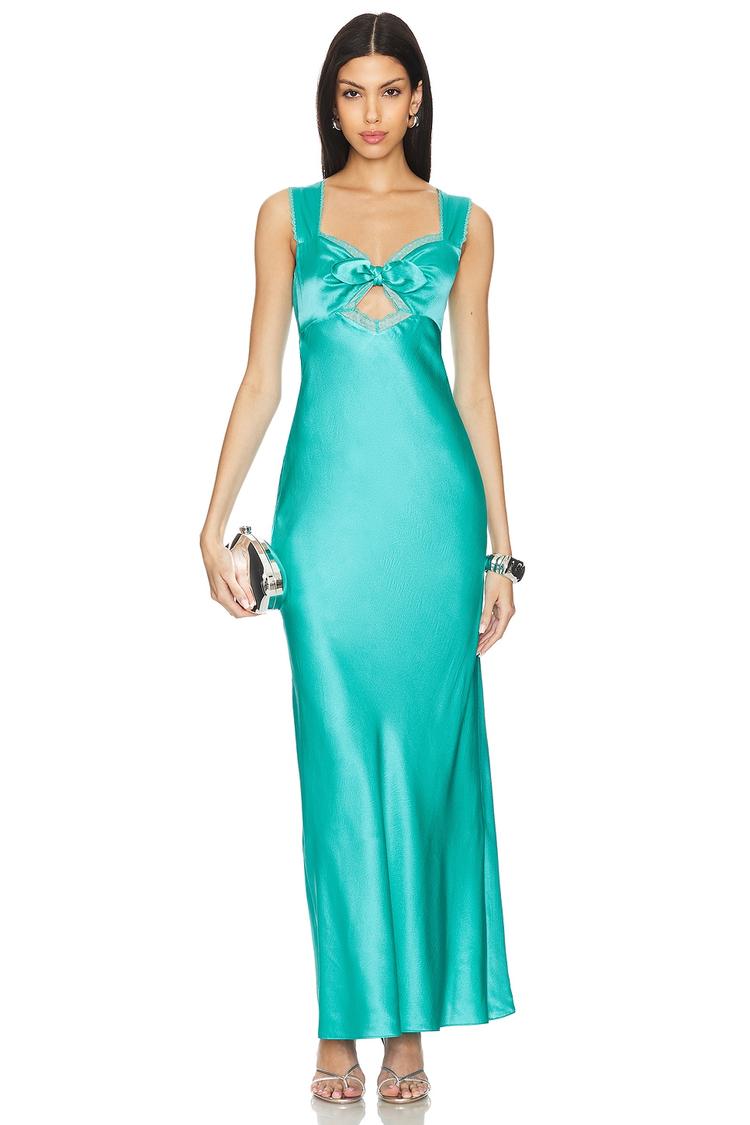 Satin fabric with a subtle sheen complements the slender silhouette of this maxi slip dress. Featuring a sweetheart neckline with a charming bow accent and a cut-out detail at the front bodice, it exudes an elegant yet sexy vibe. The sleeveless design with wide straps and a hidden back zipper closure ensures a smooth fit, while delicate lace trim adds refined sophistication. Ideal for summer and spring evenings, this dress is perfect for cocktail parties, date nights, and nights out, offering a polished and graceful look with luxurious silk and nylon blend fabric.