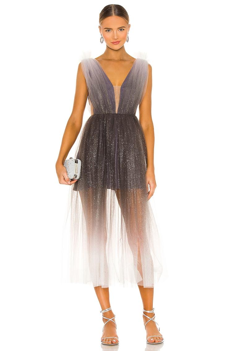 Glittered tulle layers and a fitted silhouette create a modern and elegant midi dress perfect for cocktail parties, semi-formal events, or date nights. Featuring a deep V-neck and wide straps, this dress offers a chic open back with a concealed zipper closure. The shimmer dark gray fabric adds a subtle sparkle all over, while the sheer tulle hemline adds delicate dimension. Crafted from lightweight polyester with a rayon lining, it provides comfort and style for all seasons.