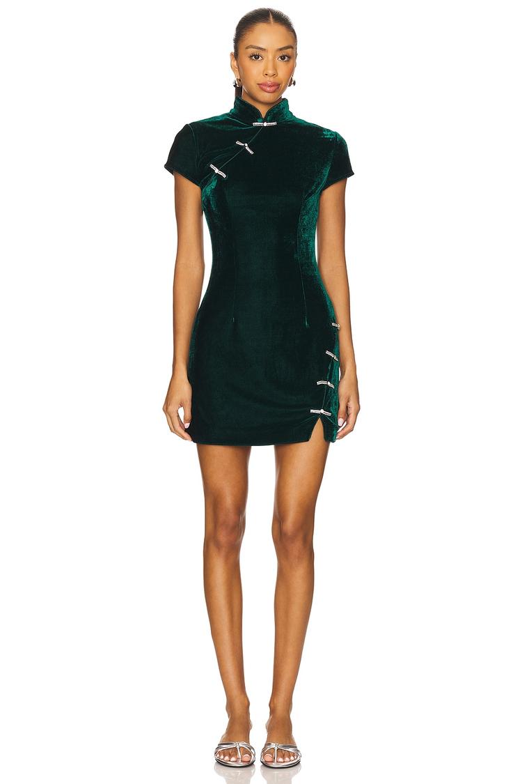 Rich velvet texture and a sleek mandarin collar lend a sophisticated edge to this fitted mini shift dress in deep matte dark green. Featuring half sleeves and silver buckle embellishments along the front, it creates a modern yet elegant silhouette perfect for cocktail parties, night outs, or date nights. The hidden back zipper ensures a smooth fit while the midweight fabric keeps it seasonally appropriate for autumn and winter evenings. This dress balances classic design with contemporary details for a chic, confident look.