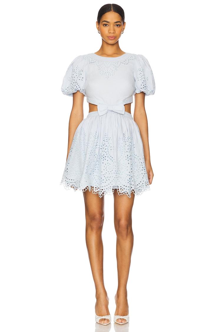 Intricate embroidery on airy linen fabric brings a romantic charm to this mini dress, featuring a fitted bodice with a round neckline and puffed half sleeves. The scalloped hem and playful back cut-out detail add a modern twist to the classic A-line silhouette. Perfectly suited for warm spring and summer days, it’s an ideal choice for brunches, date nights, or cocktail events where effortless elegance is key.