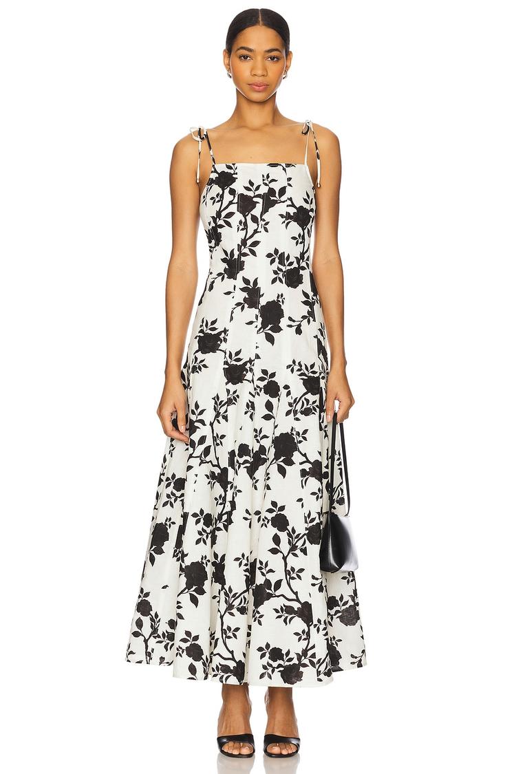 Soft and airy, this maxi dress features a romantic floral print in classic black and white. Crafted from a comfortable polyester-cotton blend, it offers a flowy A-line silhouette with a square neckline and adjustable shoulder straps for a perfect fit. The hidden back zipper with hook and eye closure ensures a smooth, elegant look. Ideal for spring and summer occasions like brunch, date nights, or vacation getaways, its timeless design combines comfort and style effortlessly. The clean hemline completes the look with understated grace.