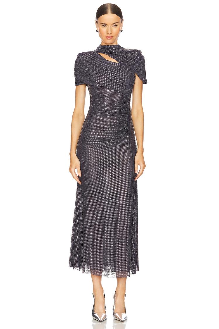 RHINESTONE MESH CUT OUT MIDI DRESS