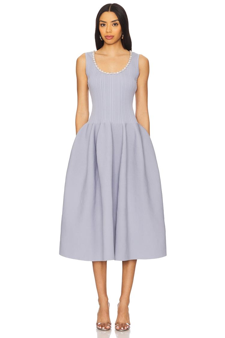 RIBBED KNIT DIAMANTE MIDI DRESS