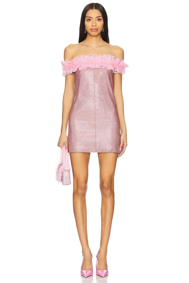 Shimmering pink crystal-embellished fishnet fabric combines with a fitted mini silhouette to create a striking off-shoulder shift dress. Featuring a straight neckline and sleeveless styling, this glamorous piece is perfect for cocktail events, night outs, or romantic date nights. The clean hemline and all-over crystal details add a sophisticated sparkle, while the polyester and polyamide blend ensures a comfortable fit. A back zipper closure enhances the sleek design, making this dress a trendy and elegant choice for special occasions year-round.