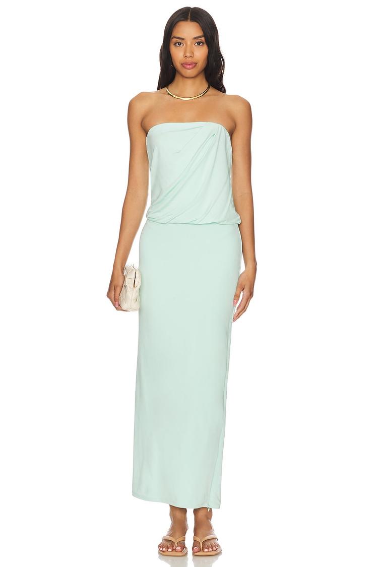 Soft matte light mint fabric and a sleek column silhouette define this strapless maxi slip dress. Crafted from a viscose-spandex blend, it promises a comfortable, slim fit with pull-on ease. The clean, straight neckline and sleeveless design enhance its minimalist elegance, making it an ideal choice for spring and summer occasions. Perfect for casual outings, beach vacations, or a stylish brunch, this fully lined dress balances simplicity with refined style, offering versatility for a variety of settings.