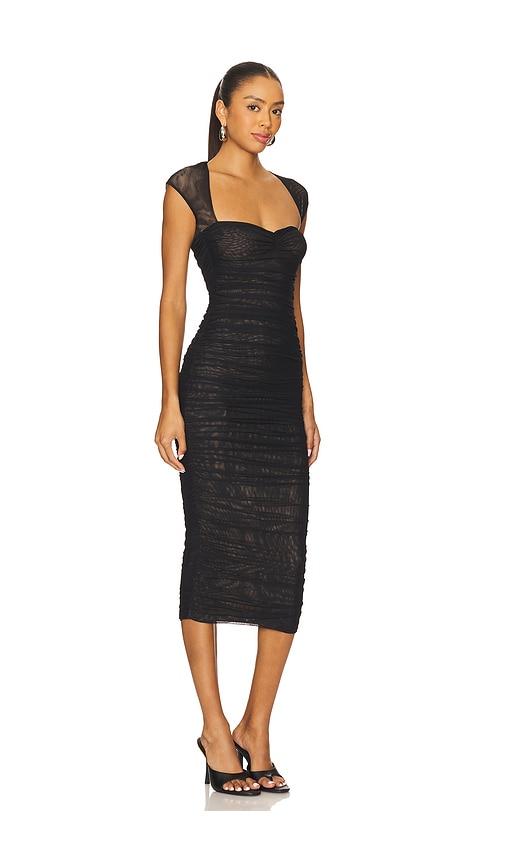 SEROYA KYLIE MESH MIDI DRESS IN BLACK.