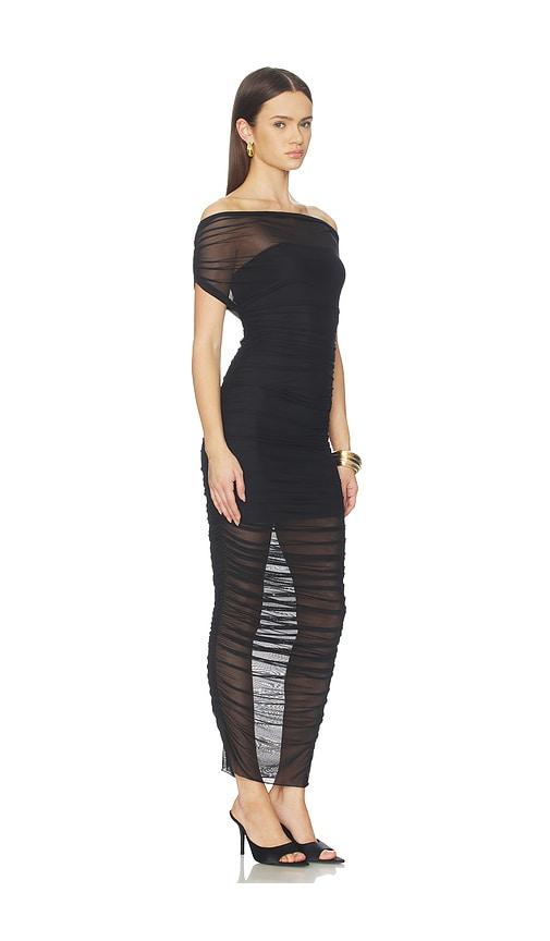 SEROYA NOEL MESH MIDI DRESS IN BLACK.