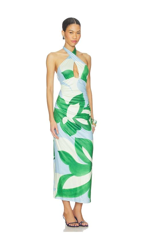 SEVEN WONDERS AUBRIE CROSS FRONT MIDI DRESS IN GREEN, BABY BLUE.