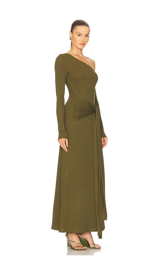 SEVEN WONDERS BIANCA ONE SHOULDER MAXI DRESS IN GREEN.