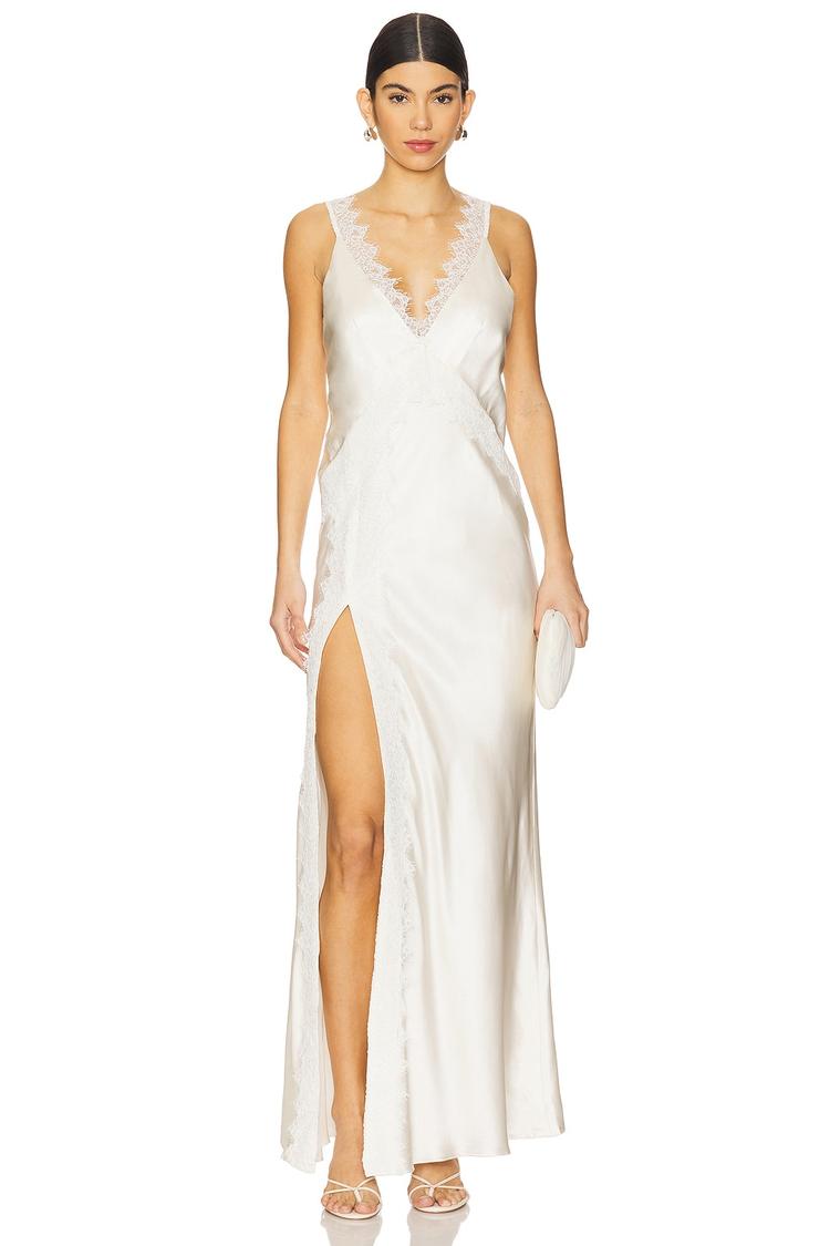 LA LUNE CUMULUS SILK LACE STRAP SPLIT MAXI DRESS