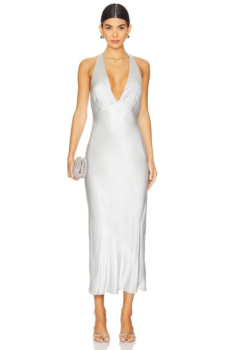 LA LUNE PLUNGED CROSS BACK MIDI DRESS